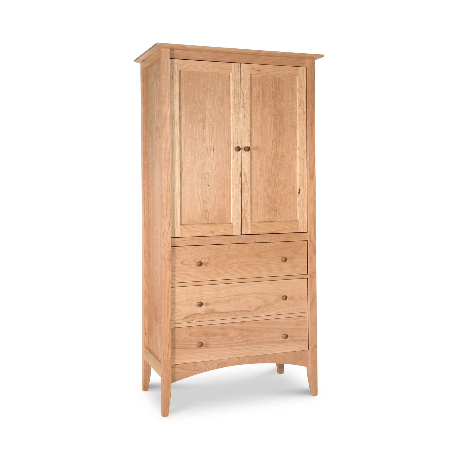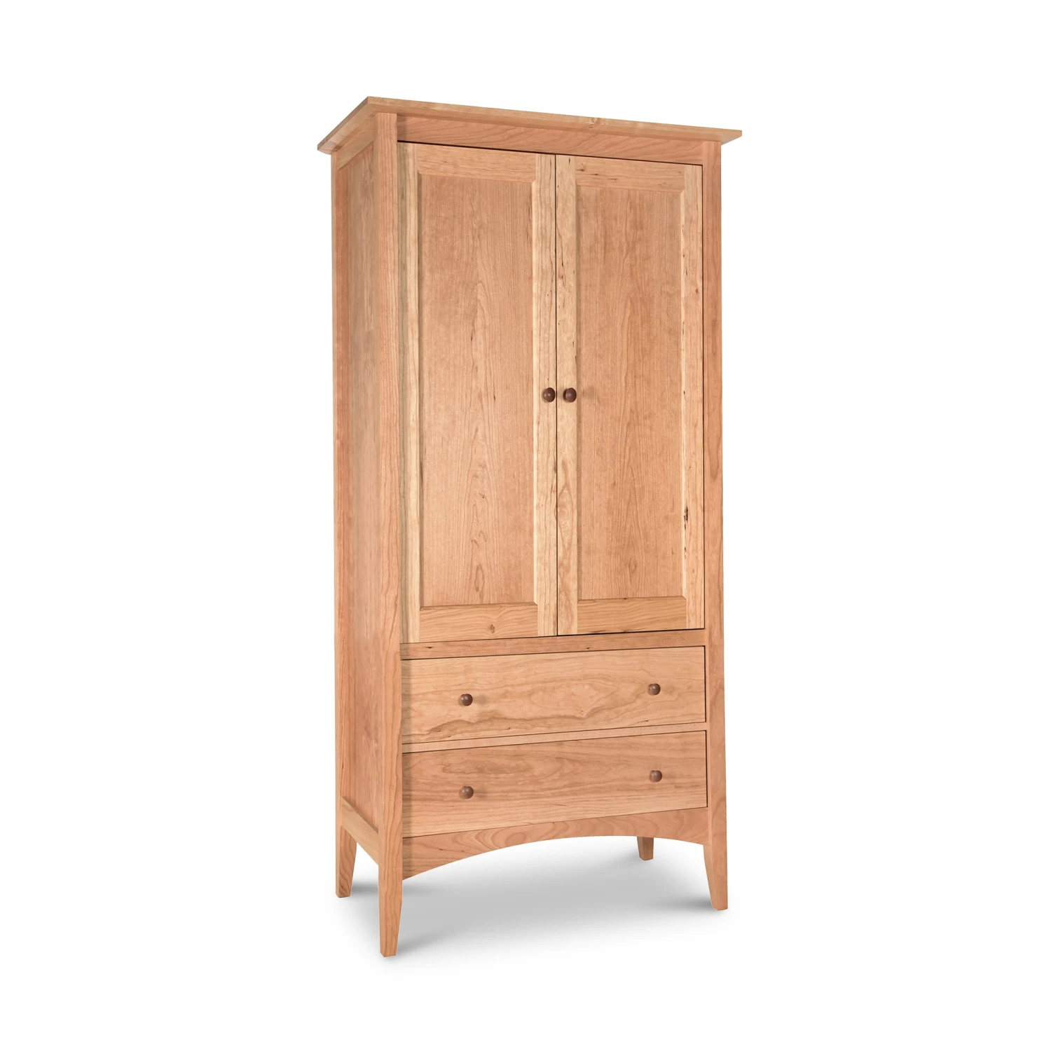 Experience the timeless appeal of the American Shaker Furniture Collection with this exquisitely crafted armoire. Handmade in the USA using premium solid wood, this piece combines traditional Shaker aesthetics with functional modern storage. Designed to be an heirloom, this tall wardrobe provides a sophisticated solution for organizing your clothing while adding a touch of natural warmth to your living space.