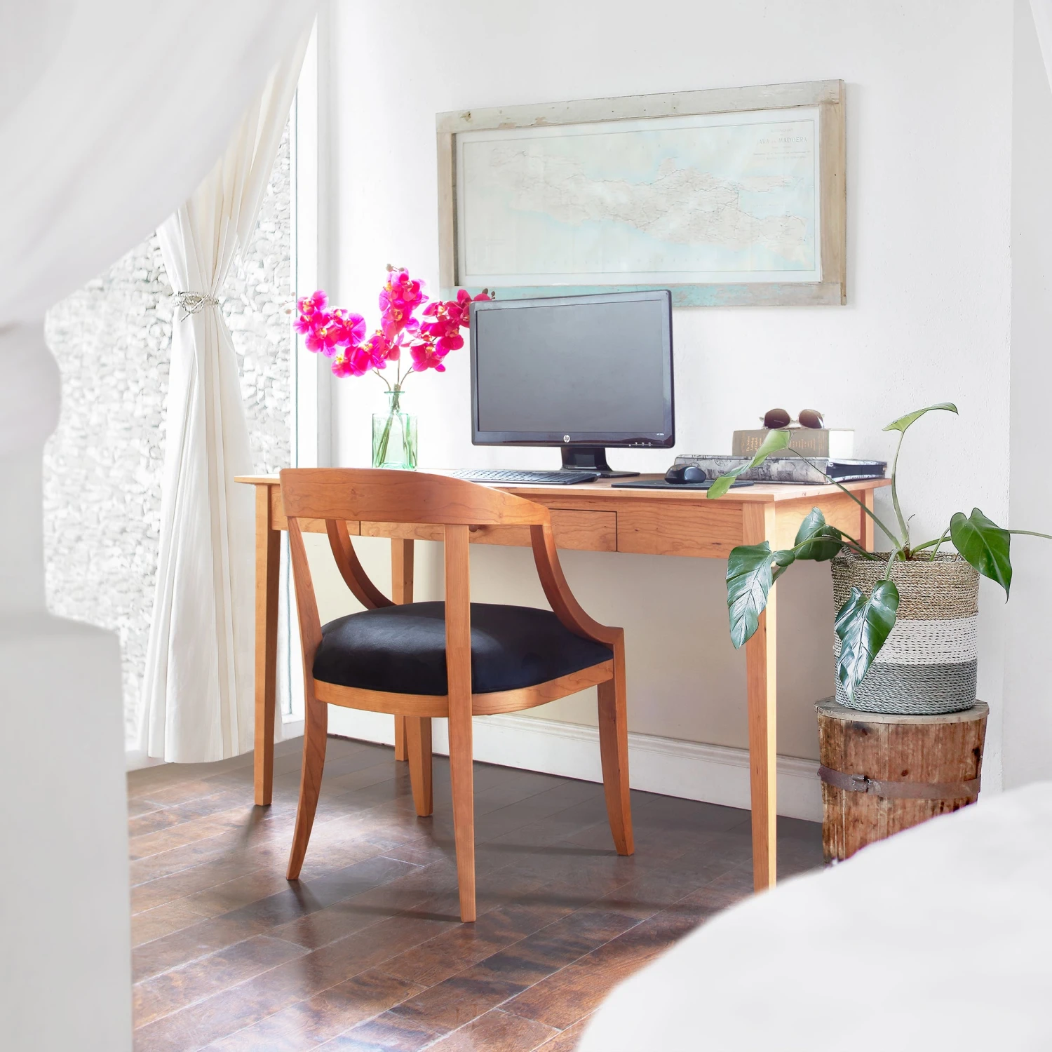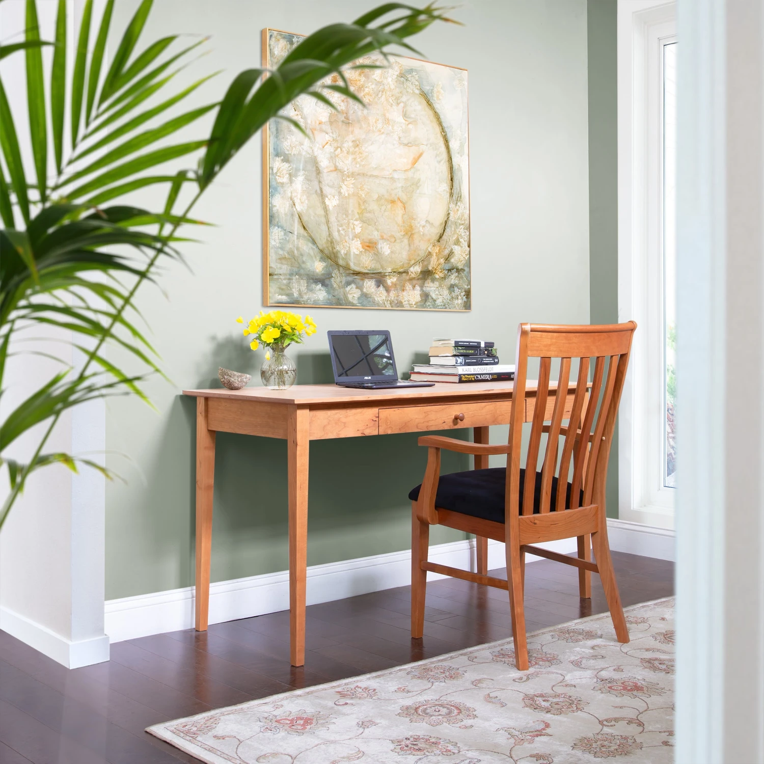 Channeling your inner Shakespeare, Einstein or Tesla? Our American Shaker Writing Desk provides the perfect place to let your brilliance and creativity shine. Beveled edges, a solid top and 2-sided tapered legs are all skillfully handmade in your choice of sustainably harvested natural cherry, maple or walnut hardwood. Our highly experienced Vermont craftsmen put the utmost care into every detail to ensure that your new creative space is the best that Vermont has to offer. Let your inner genius flow with an American Shaker Writing Desk of your own.