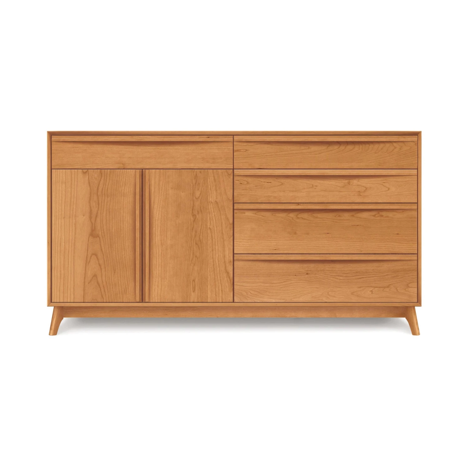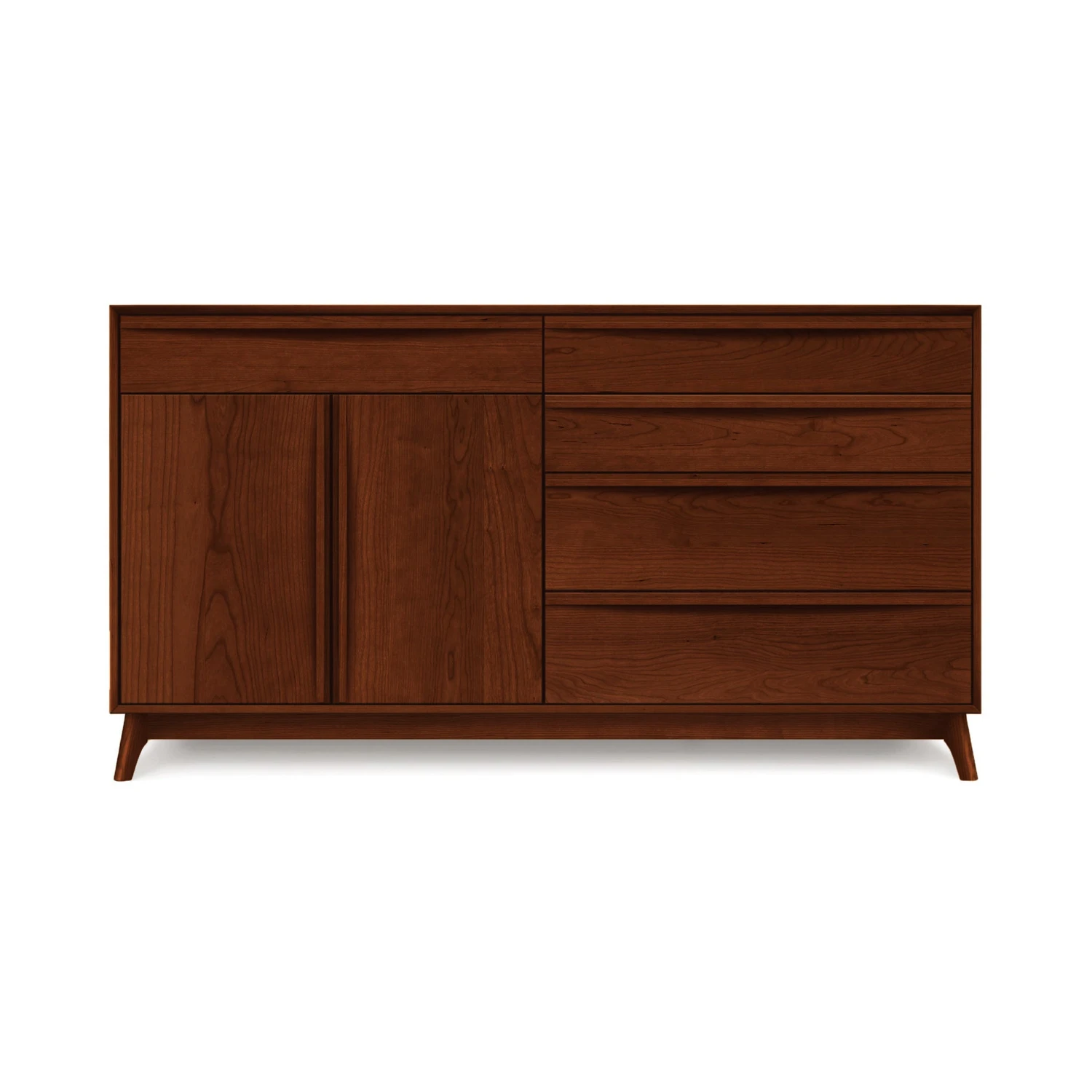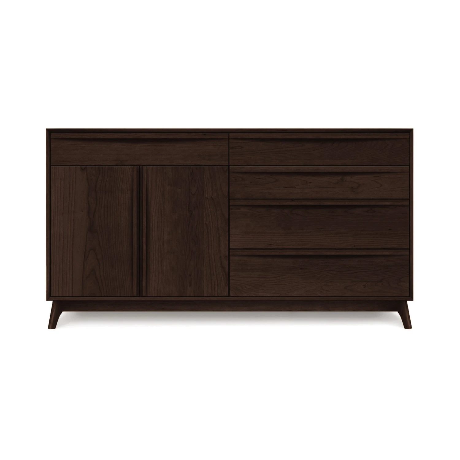 Embrace the timeless elegance of the post-WWII design era with the Catalina 5-Drawer, 2-Door Dresser. Expertly crafted to bring a profound sensibility to contemporary bedrooms, this piece serves as the ultimate storage solution while acting as a stunning focal point for your interior decor. Part of the acclaimed Catalina Furniture Collection, it blends nostalgic charm with modern functionality.