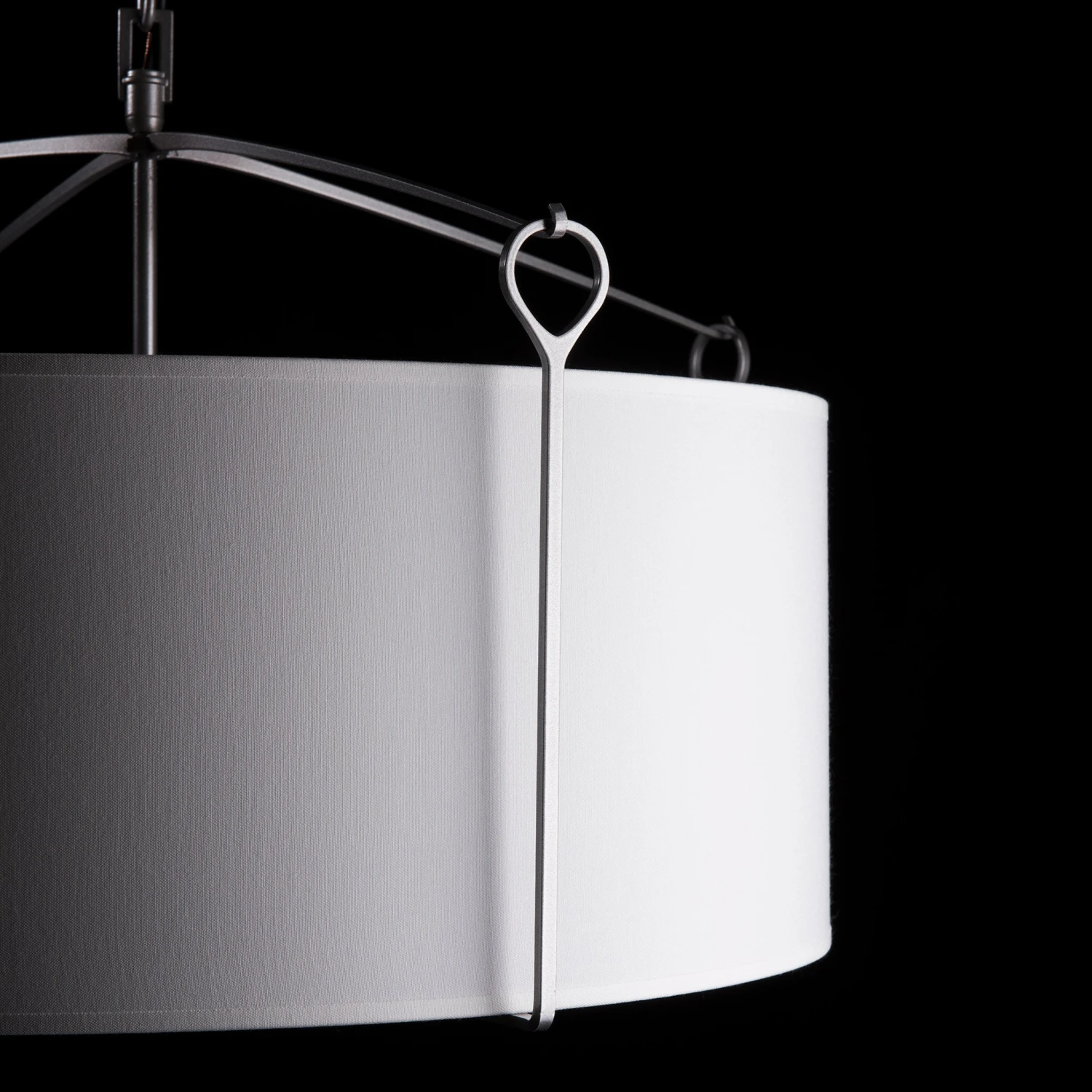 - Elegant Material Contrast: Sturdy hand-forged metal lines provide a stunning visual juxtaposition against the delicate drum-style fabric shade.