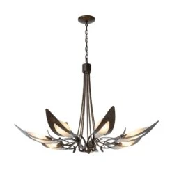 Elevate your interior with the Hubbardton Forge Parasol 7-Light Chandelier, a masterpiece of modern craftsmanship. Inspired by the graceful arc of a classic handheld parasol, this fixture blends artisanal slumped glass with the industrial strength of hand-forged steel to create a sophisticated focal point for any luxury home.