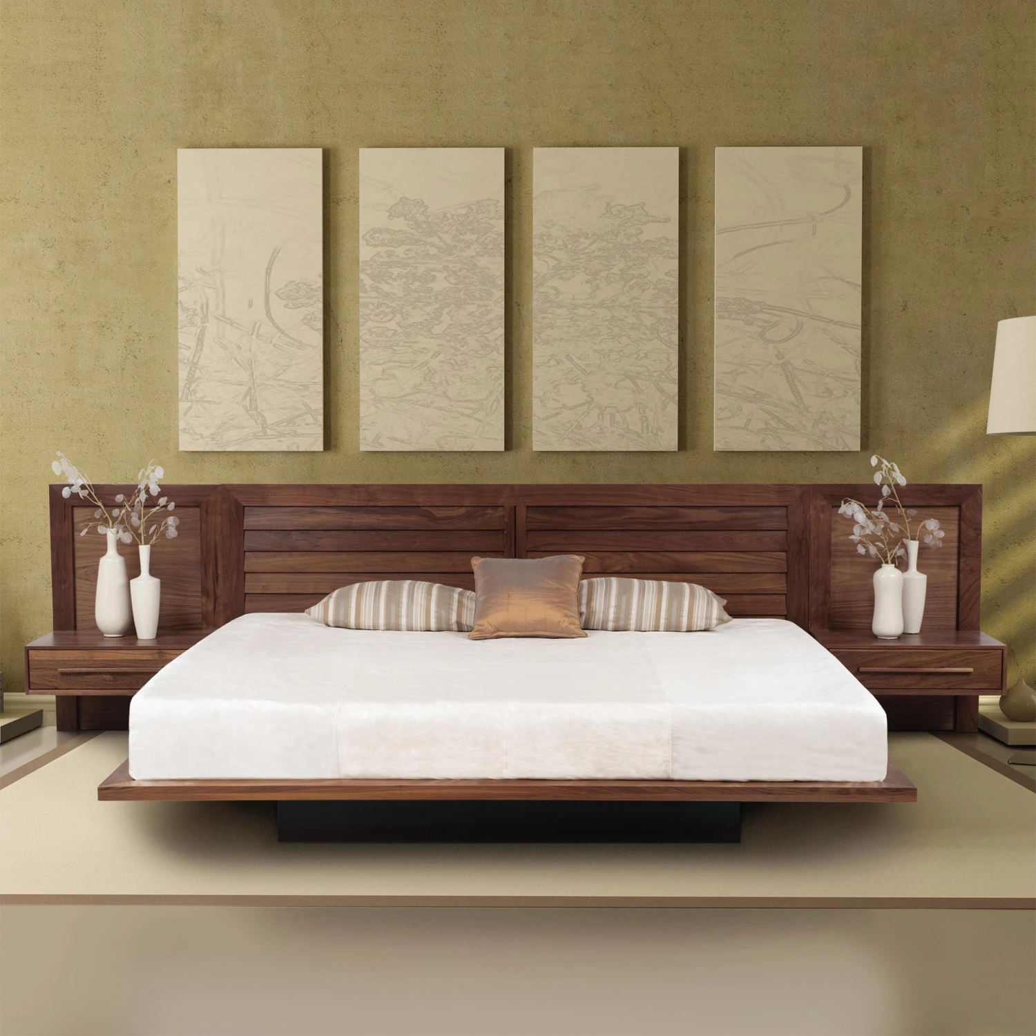- Design Motif: Deeply set plinth platform (No box spring required)