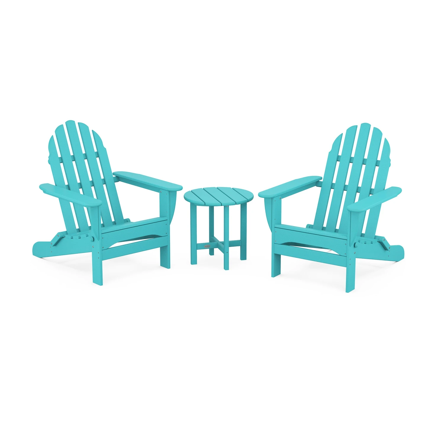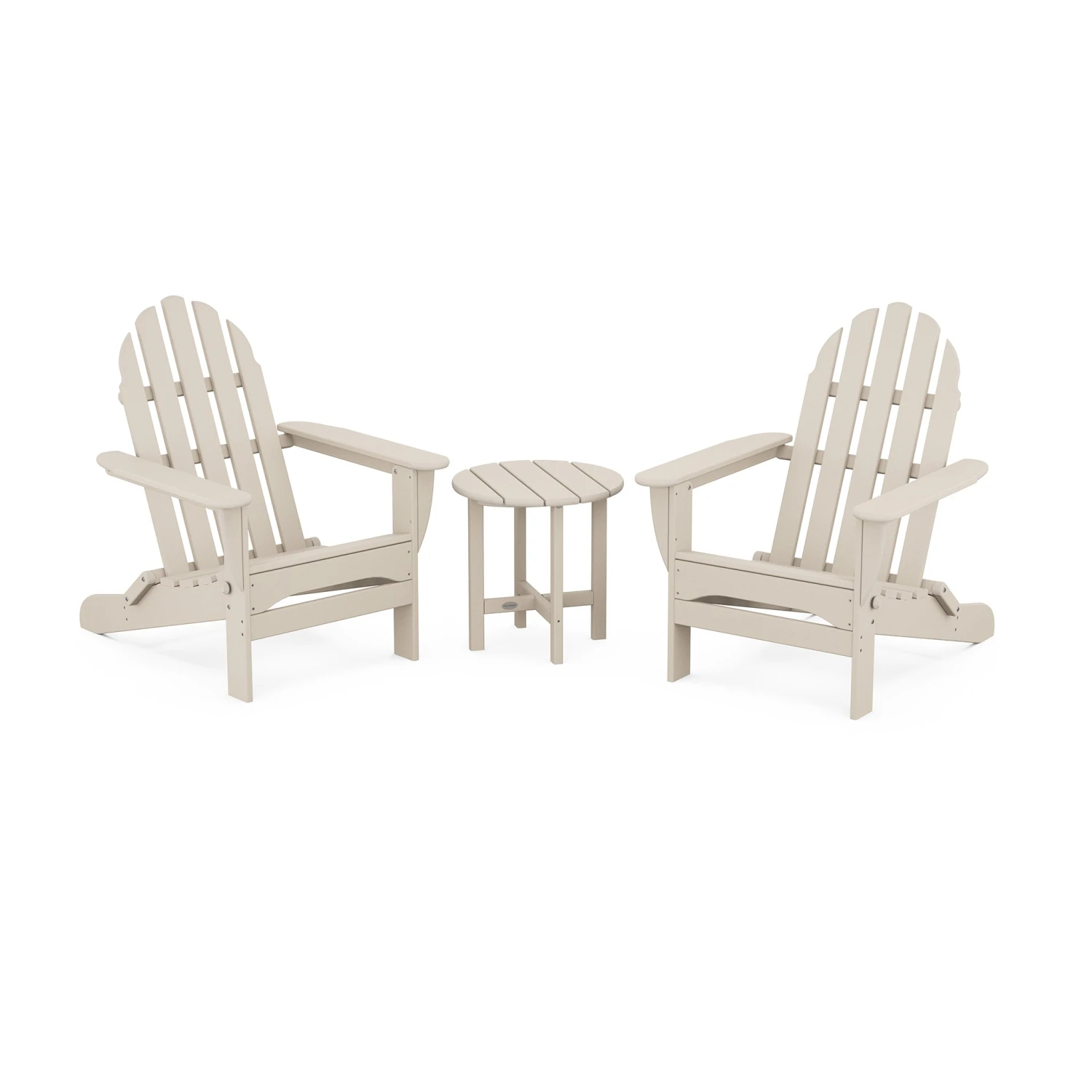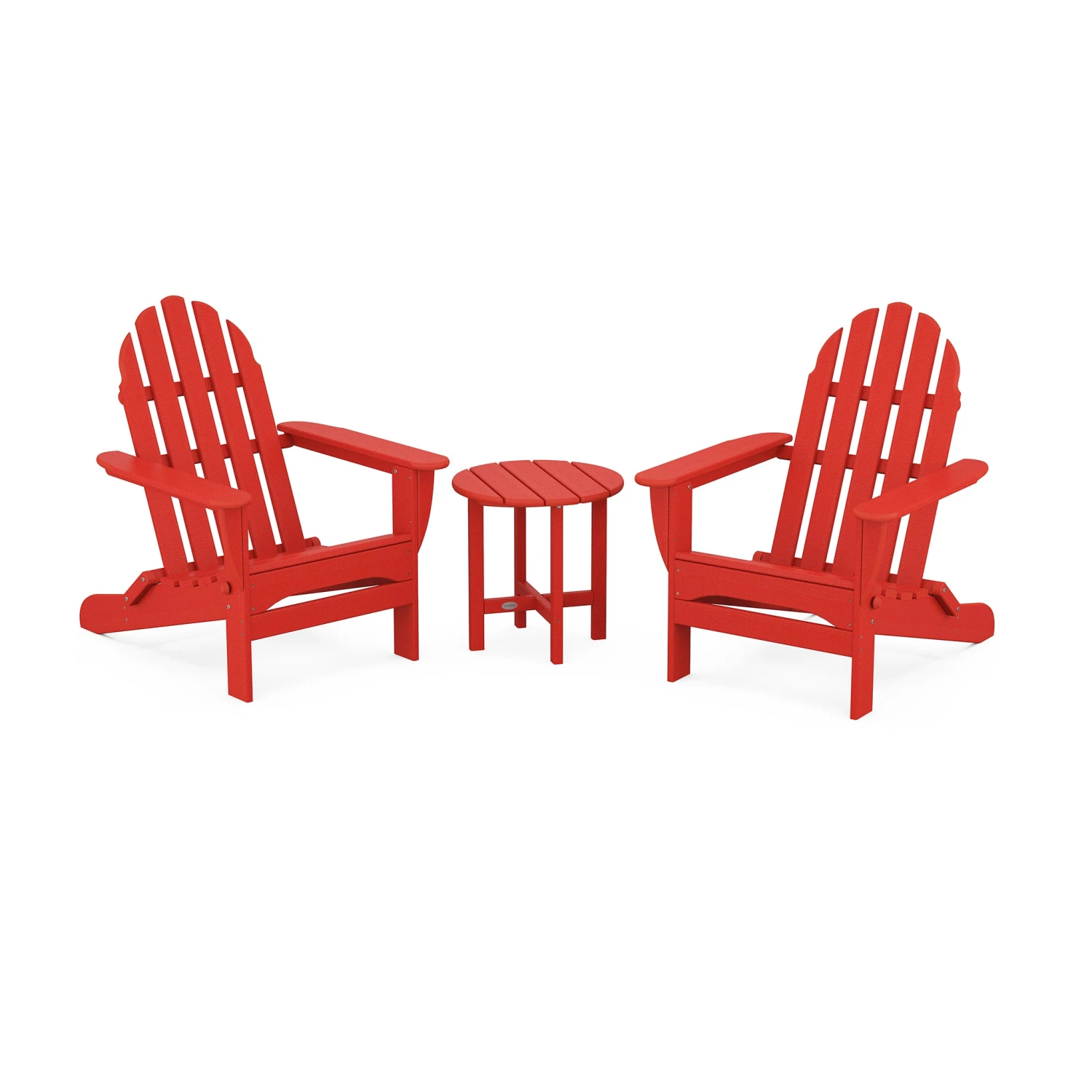 Two Classic Adirondack Chairs and one Round 18″ Side Table can be found in this convenient outdoor furniture set. Our Classic Folding Adirondack 3-Piece Set is made from genuine POLYWOOD® lumber and marine-grade hardware ensuring the ultimate in outdoor durability. You get the sturdiness and look of classic wood without all the maintenance and upkeep hassles that accompany traditional outdoor furniture. The useful folding design of the Adirondack chairs allows for easy moving. Rearrange them effortlessly all around your yard to find that right feng shui for outdoor space.Â
