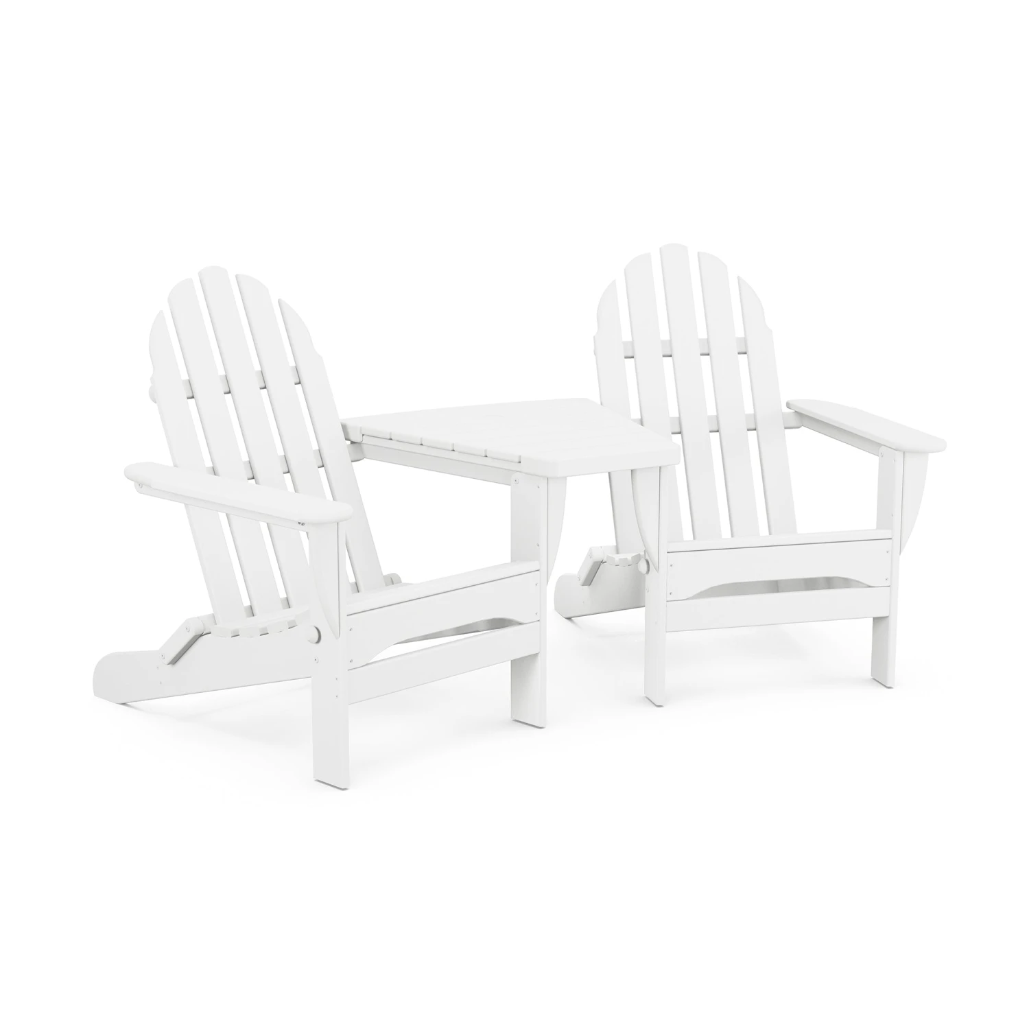 Experience the perfect blend of traditional style and modern durability with the POLYWOOD Classic Folding Adirondack Set. Designed for shared relaxation, this set pairs two iconic folding chairs with a convenient connecting table, creating a cohesive and sturdy lounge area for your patio, deck, or poolside. Crafted with the renowned POLYWOOD quality, it’s built to withstand the elements while providing a timeless aesthetic for your outdoor sanctuary.