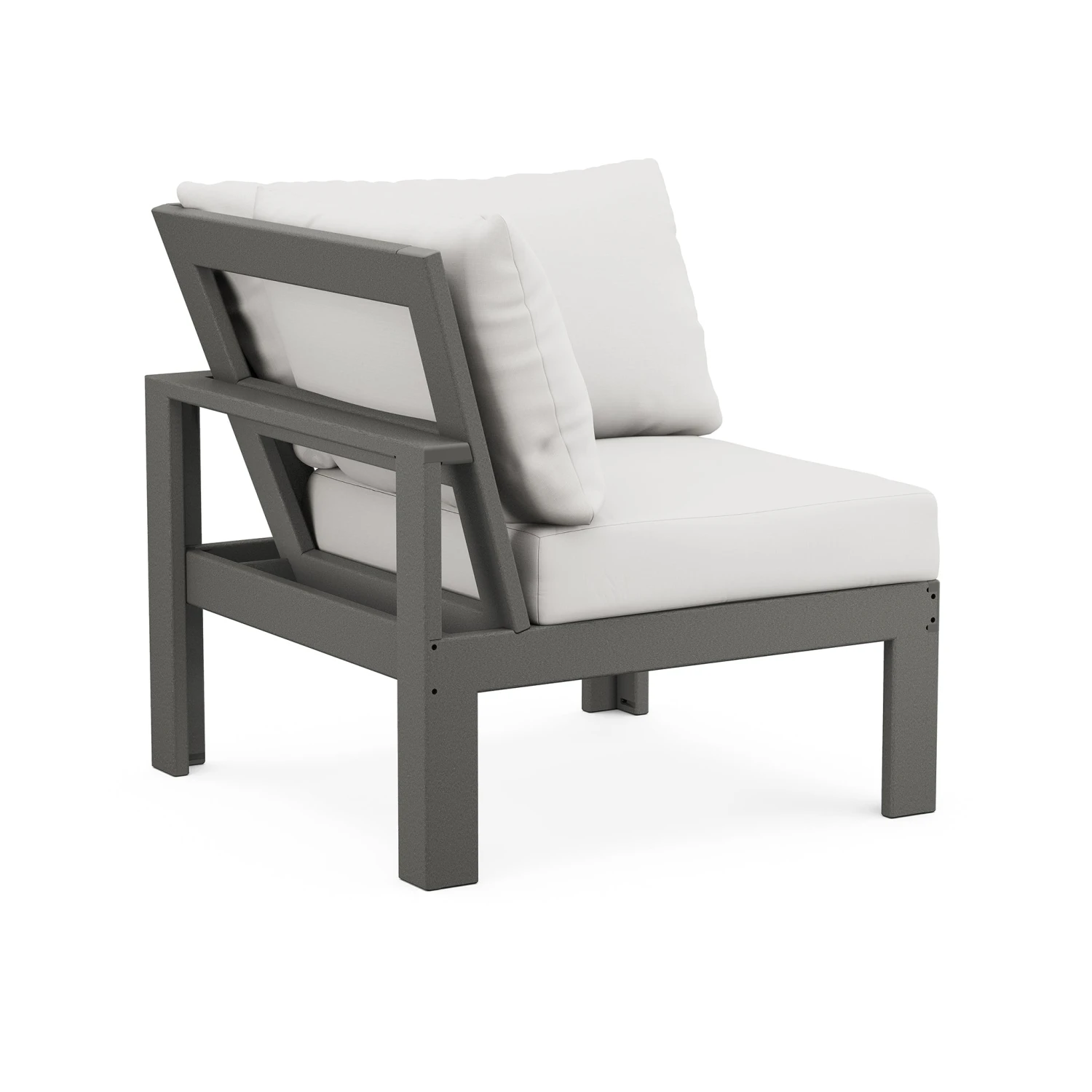Designed for those who value both style and versatility, the POLYWOOD Modular Corner Chair combines sleek, modern lines with an innovative design. Part of the prestigious EDGE Modular Outdoor Furniture Collection, this chair offers a unique deep seating experience with plush cushions on two sides. Whether you are creating a cozy corner nook or a sprawling sectional for hosting guests, this chair provides the flexibility to design your perfect outdoor sanctuary.
