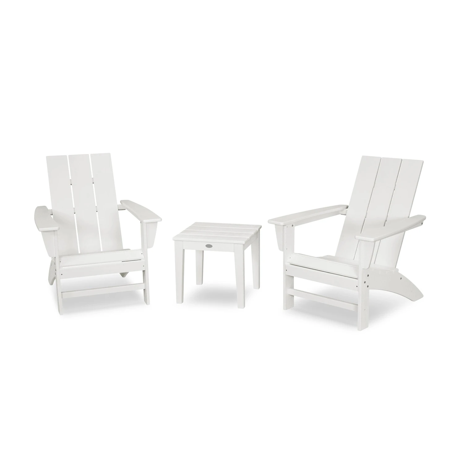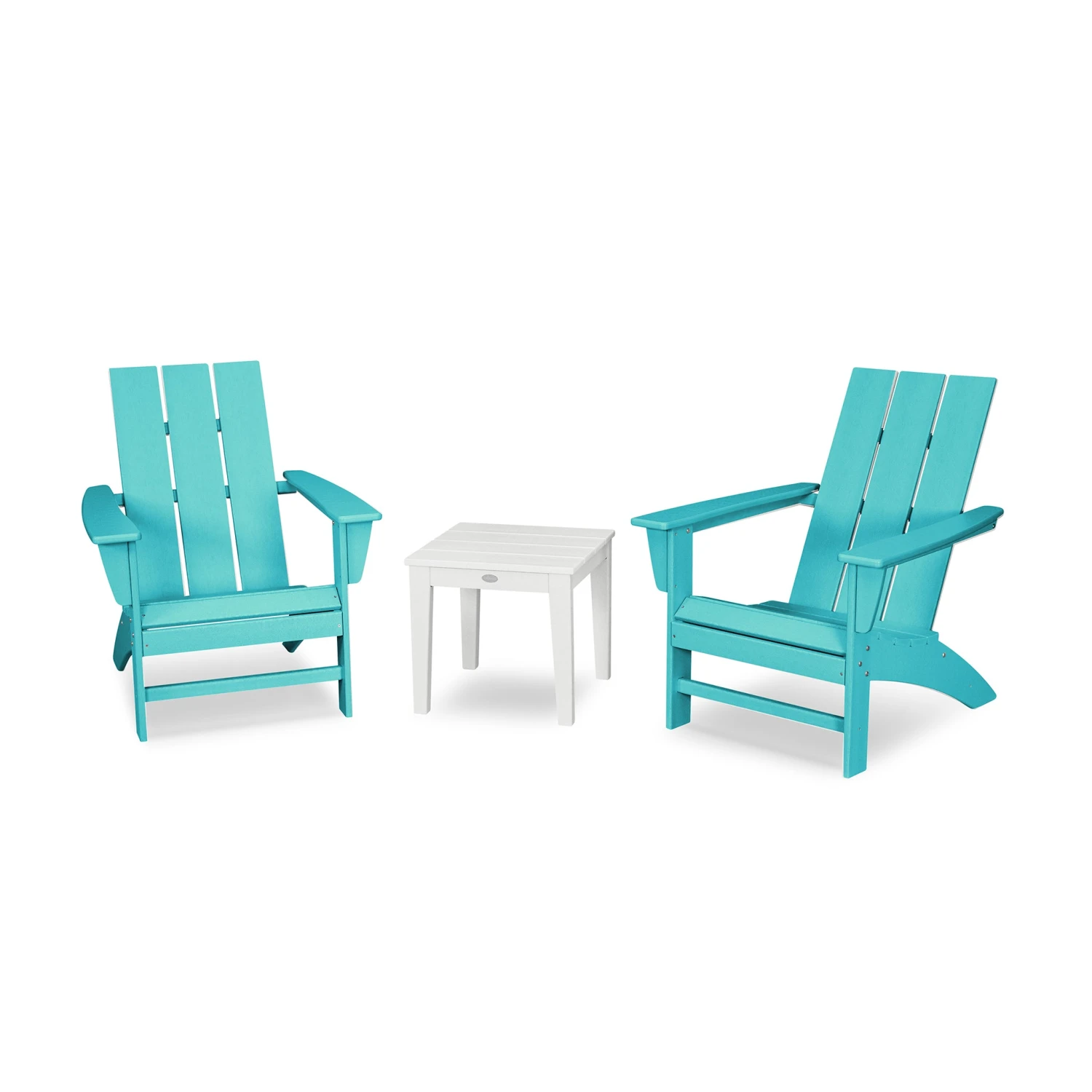 - Included Items: 2 Modern Adirondack Chairs, 1 Newport 18-inch End Table.