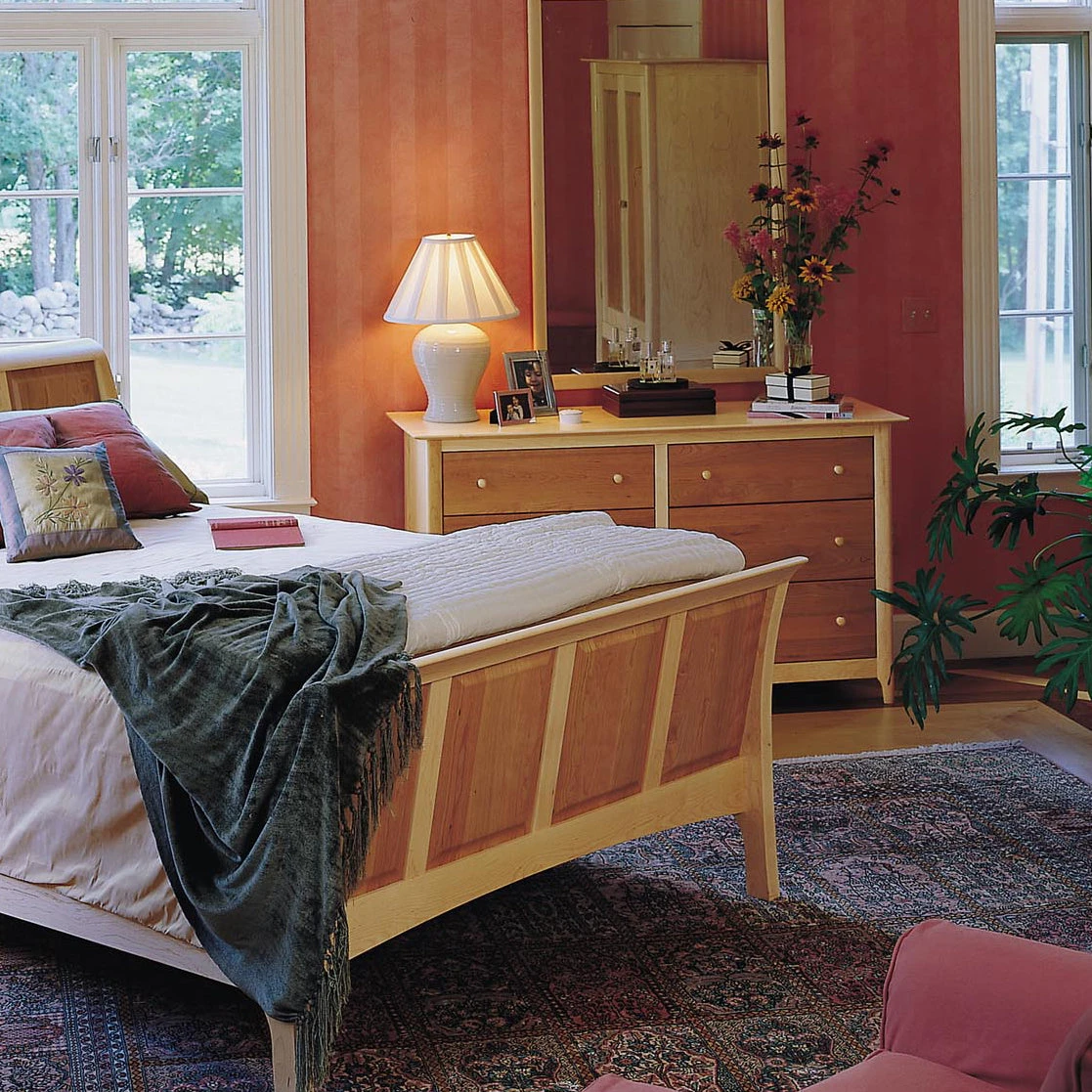 Classic American Shaker design gives Copeland’s Sarah 6-Drawer Dresser clean lines and elegant proportions. Handmade with natural cherry or maple wood (or both). Our luxury Shaker-style Sarah Bedroom Furniture Collection is handmade in Vermont using eco-friendly, sustainably harvested wood.