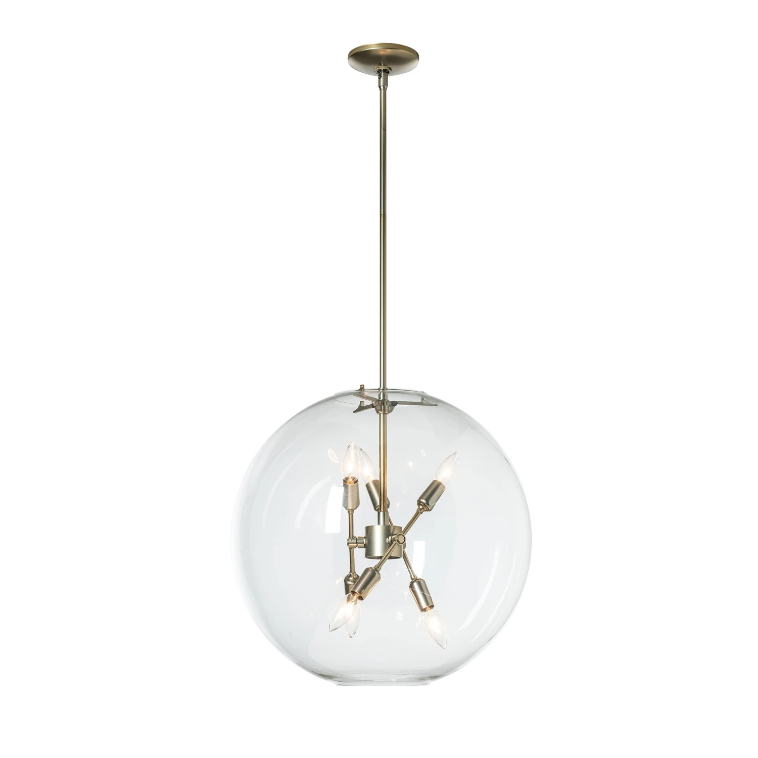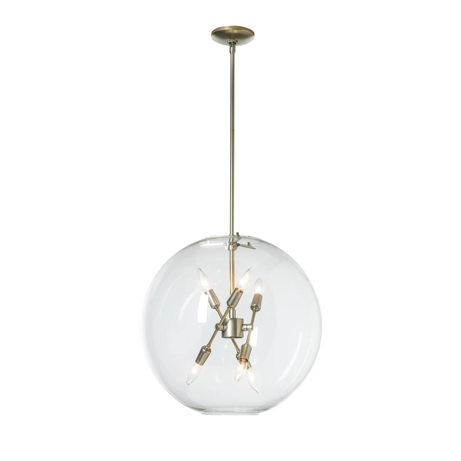 Bringing to mind memories from warm summer nights, Hubbardton Forge’s Sfera 6-Light Pendant recaptures the magic of catching fireflies once the sun goes down. The twinkling light cast from its small lightbulbs are reminiscent of the soft glow of these summertime night fliers caught in a glass jar. A clear glass orb surrounding the six bulbs within completes the nostalgic vibes. Simple in tailoring, this pendant emits unlimited sentimentality.Â