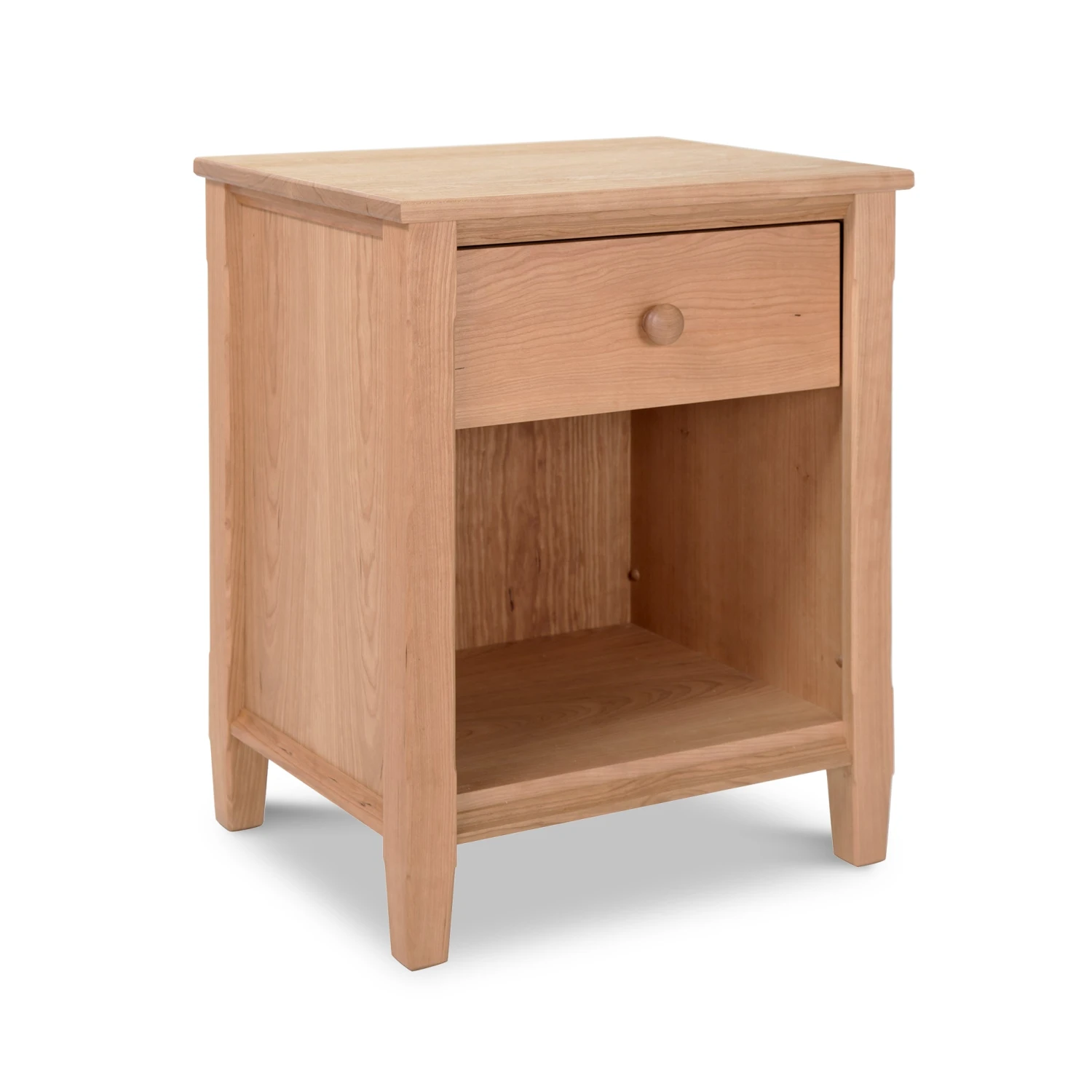 The Vermont Shaker 1-Drawer Enclosed Shelf Nightstand embodies the essence of traditional Vermont craftsmanship, bringing a touch of timeless elegance to your bedside. Built with clean, simple lines and hand-selected natural hardwoods, this piece is designed to be more than just furniture—it is a durable heirloom that balances minimalist form with essential function.